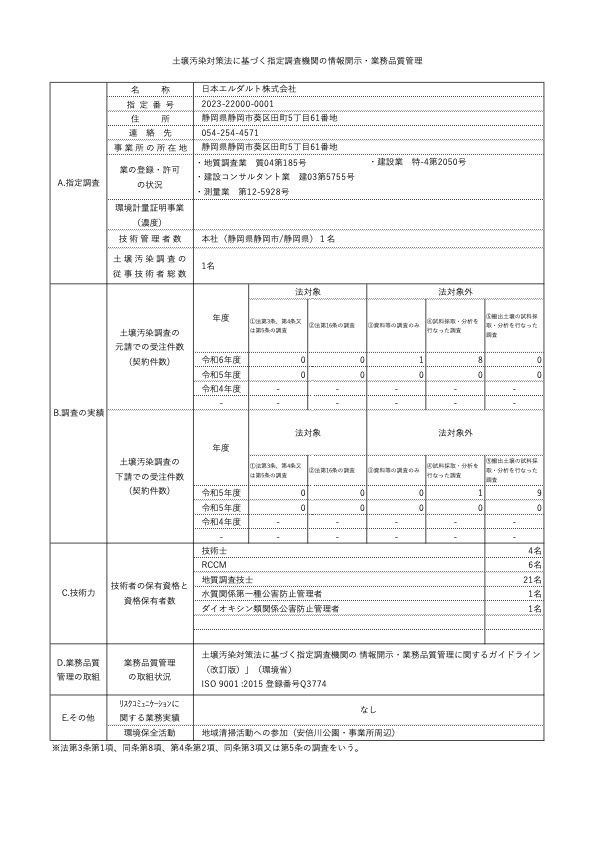 土壌汚染対策法に基づく指定調査機関の情報開示